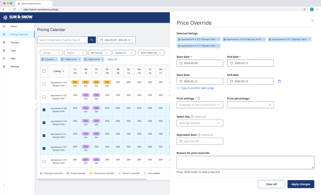 Redesigning dynamic pricing tool and booking calendar workflows with focus on enhanced simplicity and efficiency for revenue & reservation departments